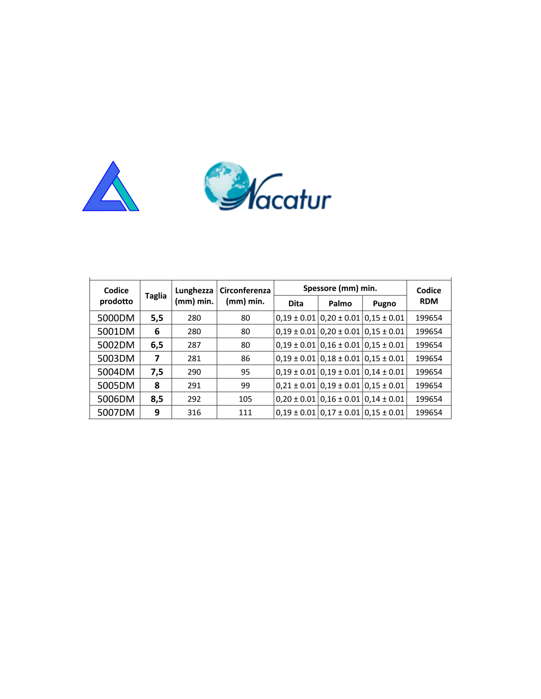 Lunghezza guanto a seconda delle misure, da 280 a 290 mm.